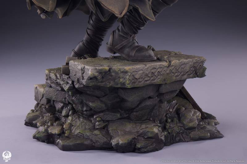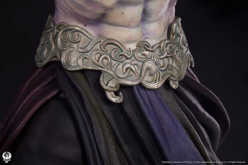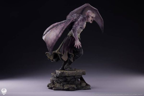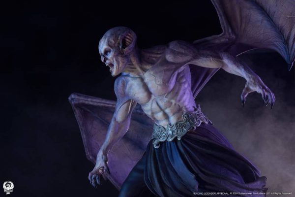 The Marcus 1:3 Statue is fully sculpted standing nearly 27” tall with an intimidating 30” wingspan. This unique vampire design is brought to stunning life with detailed sculpting capturing the musculature and supernatural vascularity of this immortal creature. Marcus’ bat-like features and razor sharp teeth bring some serious severity to his ferocious expression. The life-like textures of his tattered clothing and ornate belt add yet another layer of dimension to this impressive design.