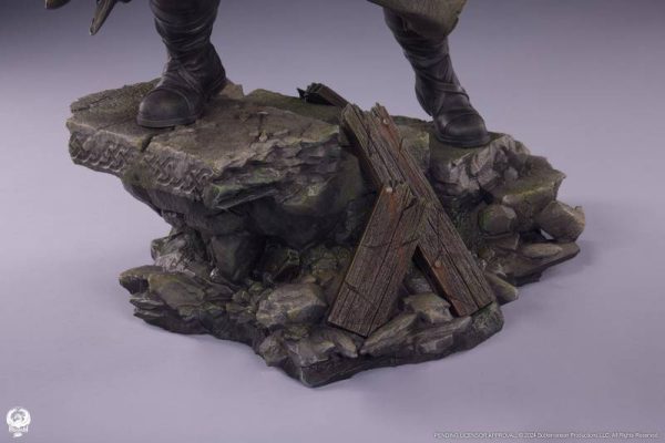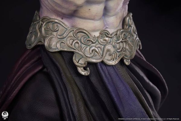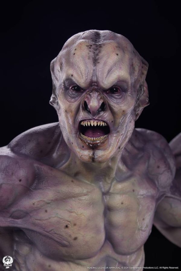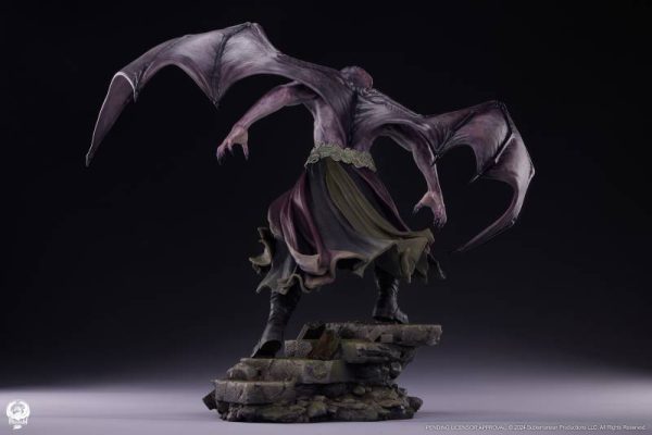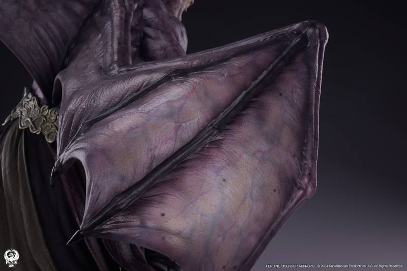 The statue is elevated even further by the incredible paintwork on display. The subtle purple gradation on Marcus’ skin adds depth to his chiseled form and the glossy black finish on his inhuman eyes will send chills down the spine of even the bravest collector. His massive purple-hued leathery wings are detailed with intricate veining that carries through the torso adding a cryptic cohesion to this nightmarish collectible.