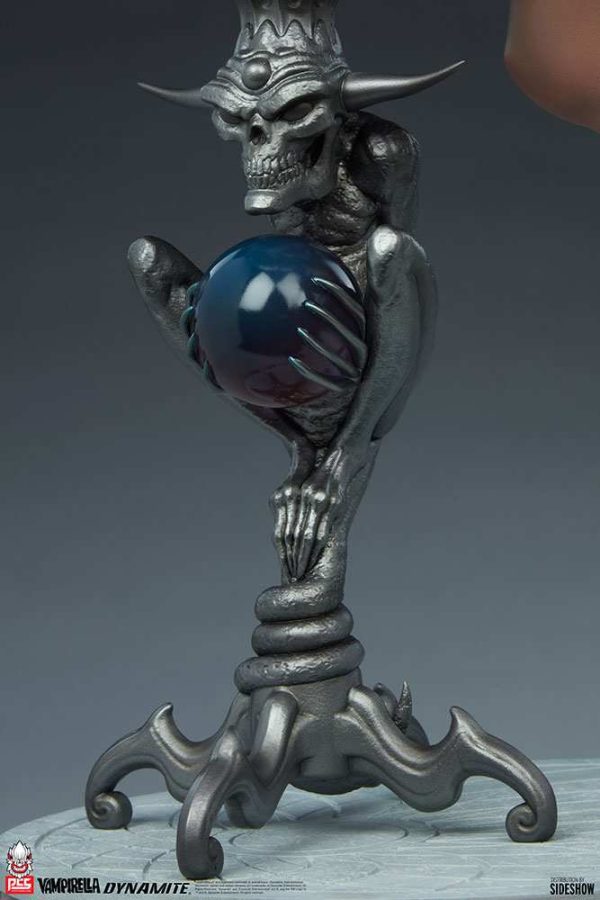 The Vampirella 1:3 Scale Statue measures 26.5” tall and 15” wide, with the vampiric vixen resting against a creepy cauldron surrounded by a pile of skulls. Blue smoke swirls in the demonic vessel and a shrieking bat takes flight, emerging from the mists. Everyone’s favorite bloodsucking bombshell looks perfectly at ease among the eerier elements of this piece, making a delightfully macabre scene.