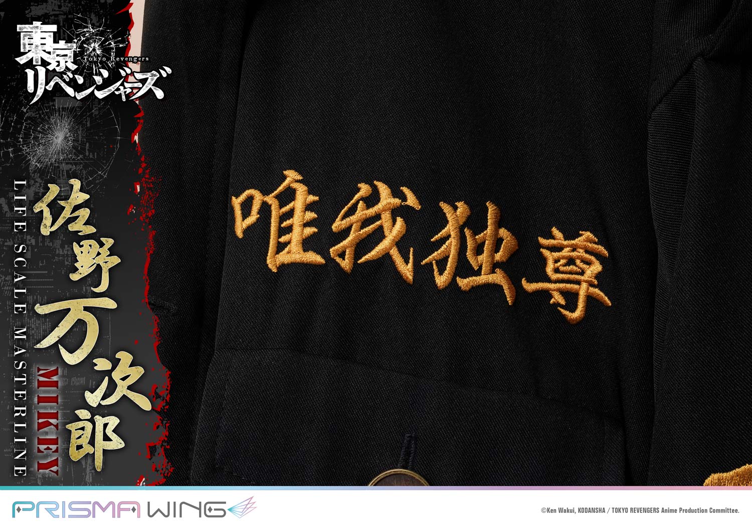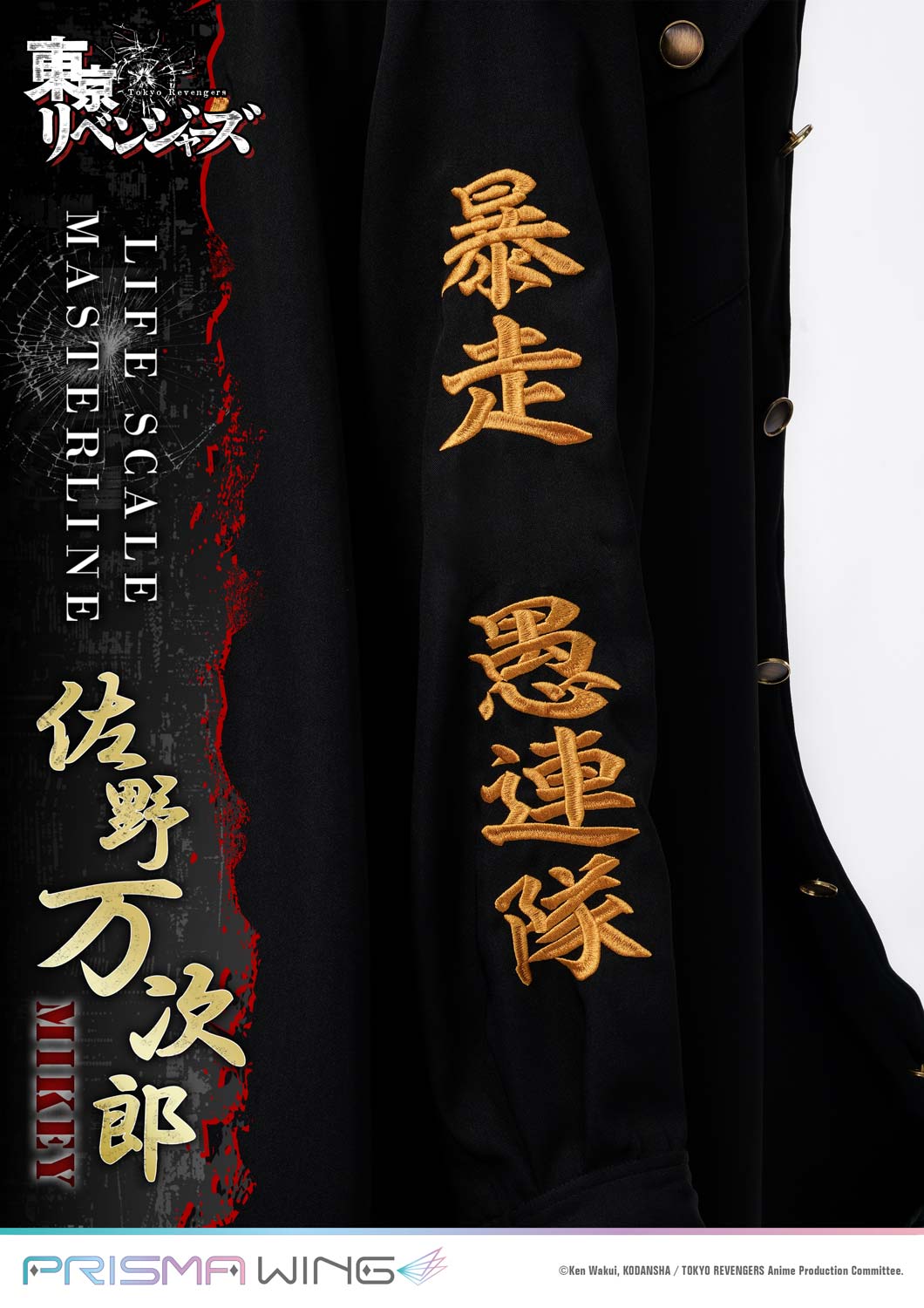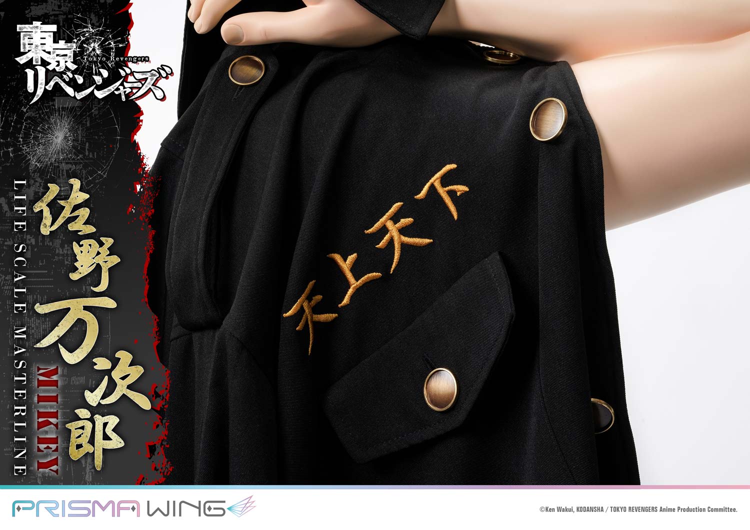 With a cool smile on his face, a lithe body charged with explosive power, and his signature tokkō-fuku uniform draped over his shoulders, Mikey—the man racing to the top of the delinquent world—has been faithfully recreated in a 169cm-tall 1/1 statue, close enough to feel like a friend. His loosely tied hairstyle is carefully sculpted, capturing every airy layer and high-toned highlight. His distinct eyes and skin tone also match the anime’s visuals to perfection. The statue’s body is made of FRP (Fiber-Reinforced Plastic), a material known for its light weight, strength, and excellent weather resistance—ensuring that he’ll remain just as striking for years to come.